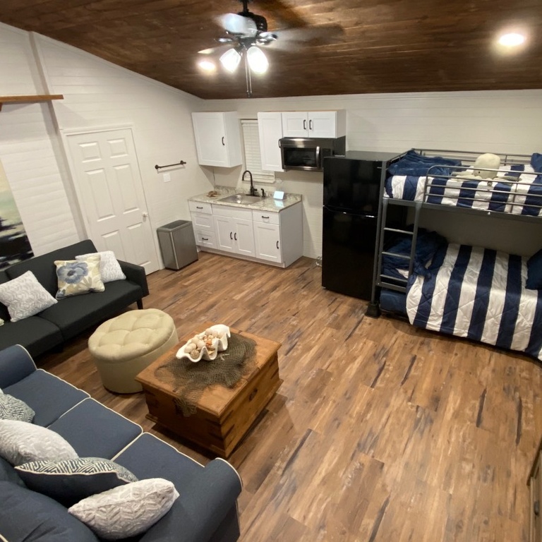 - Twin bunk beds with trundle for flexible sleeping accommodations