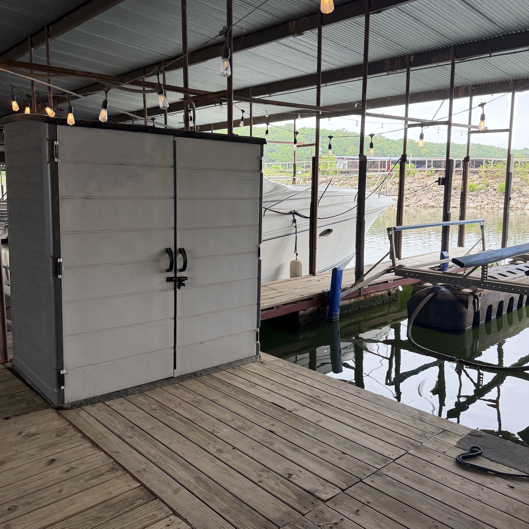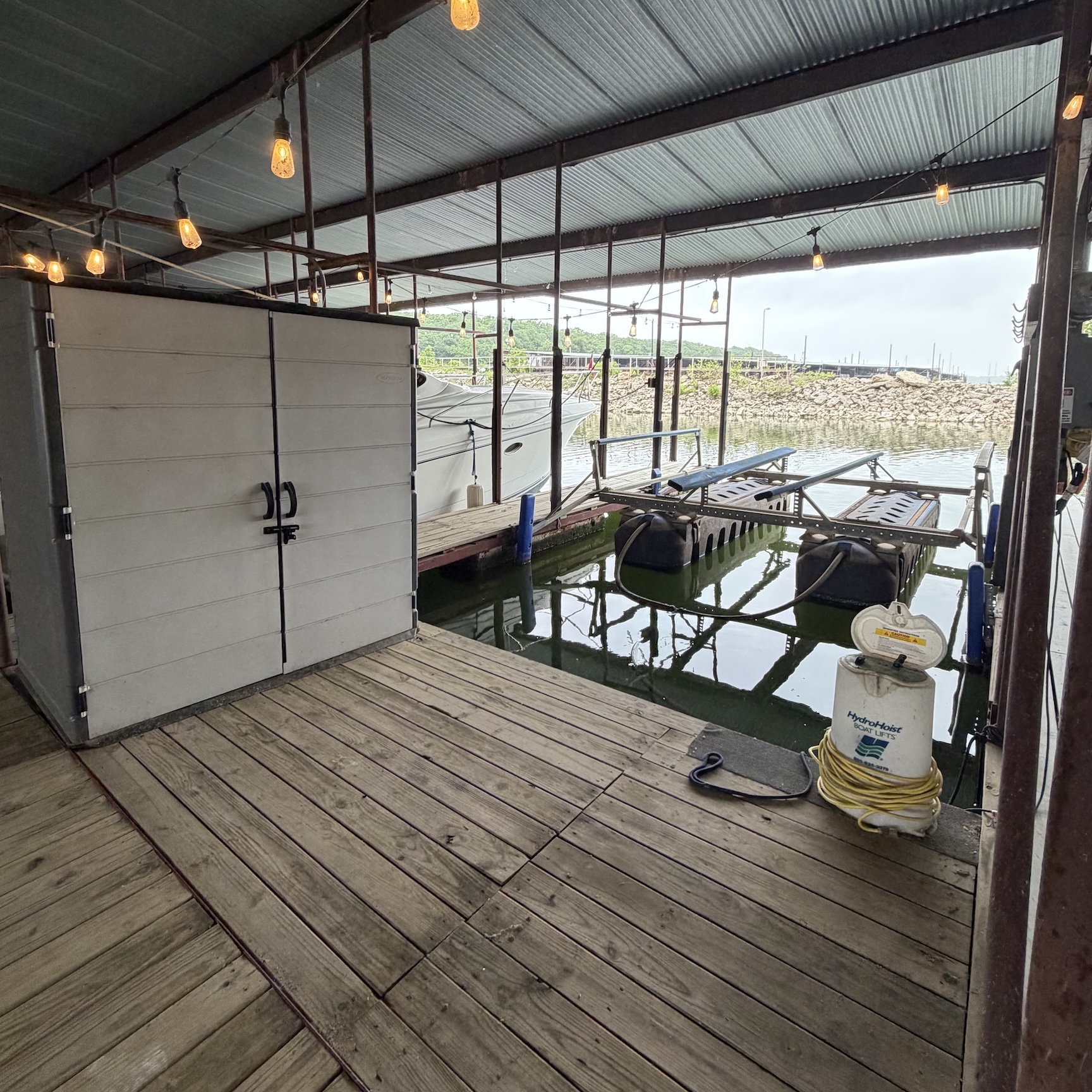 Positioned in Boathouse 1 at Slip 15L, this 32’ improved slip offers a clean, functional setup with thoughtful upgrades already in place. With extended decking and dedicated storage, it’s an ideal option for boaters looking for a simple, ready-to-enjoy space at Grandpappy Point Marina—without the hassle of starting from scratch.