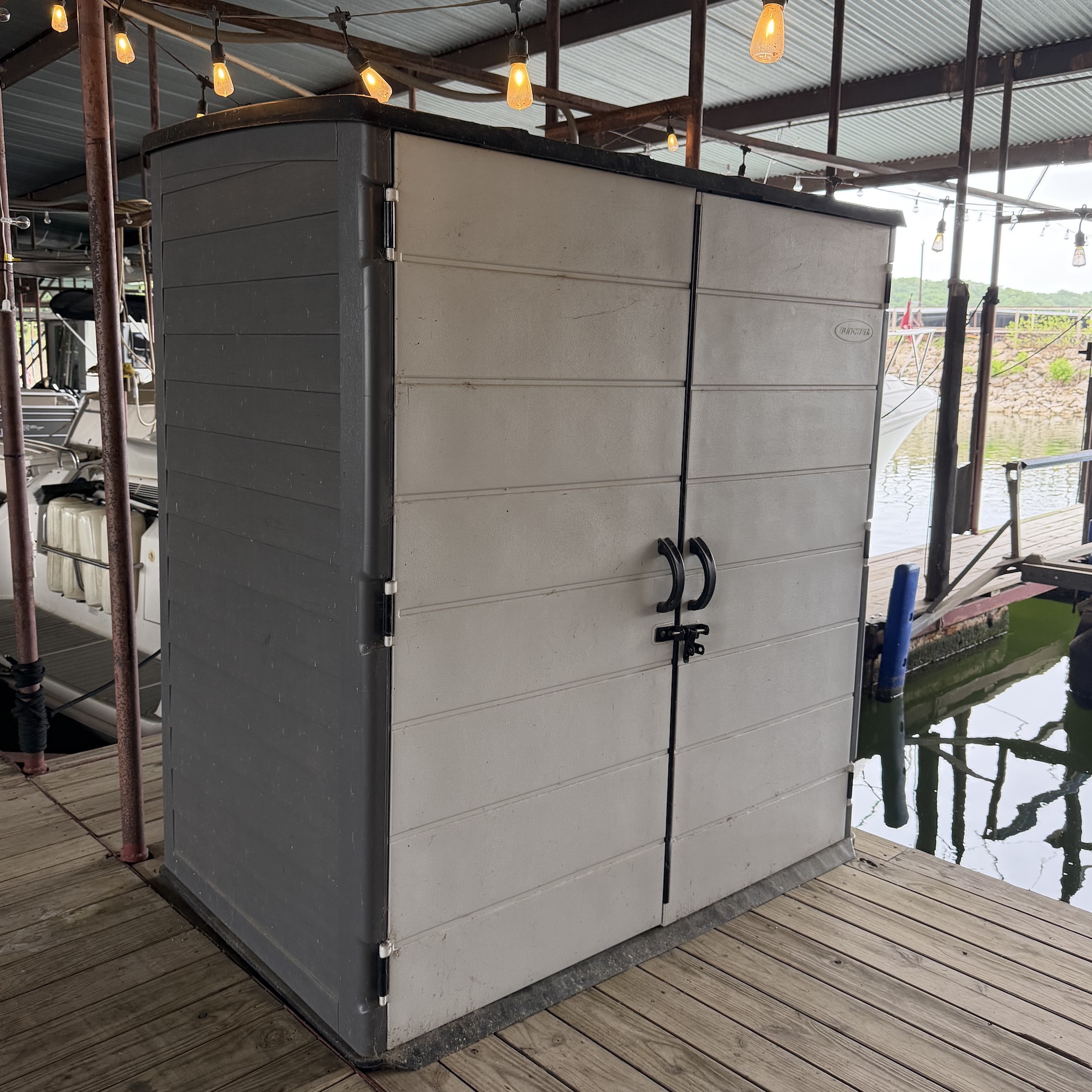 The added 6’ decking extension creates a more versatile setup—perfect for relaxing, staging gear, or enjoying time by the water. The included storage shed provides convenient space for life jackets, fishing gear, and marina essentials, keeping your slip clean and organized.